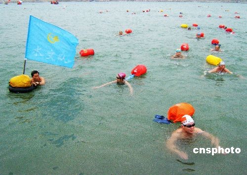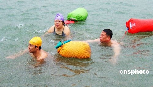 2008年12月21日是二十四節(jié)氣中的冬至,在湖北宜昌市鎮(zhèn)江閣長江段,冬泳健兒在橫渡長江。當(dāng)日下午,宜昌市舉辦第22屆冬季橫渡長江活動,264名冬泳健兒挑戰(zhàn)嚴(yán)寒成功橫渡長江,游程1500米。據(jù)悉,宜昌市已連續(xù)22年舉辦冬季橫渡長江活動。中新社發(fā) 任衛(wèi)紅 攝