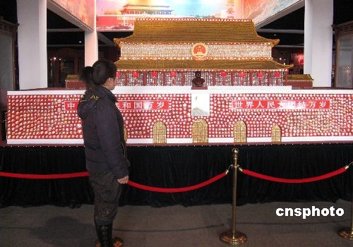 全國政協(xié)委員、著名毛澤東像章收藏家陳德,不僅建有中國最大的毛澤東像章陳列館,而且還在國外建有以展出毛澤東像章為主的中國文化展覽館,在國內(nèi)國外同時展出毛澤東像章20余萬枚。圖為陳德的位于大連市金石灘旅游度假區(qū)內(nèi)的毛澤東像章陳列館一角,該館現(xiàn)在每年接待參觀者40余萬人次。中新社發(fā) 沈殿成 攝