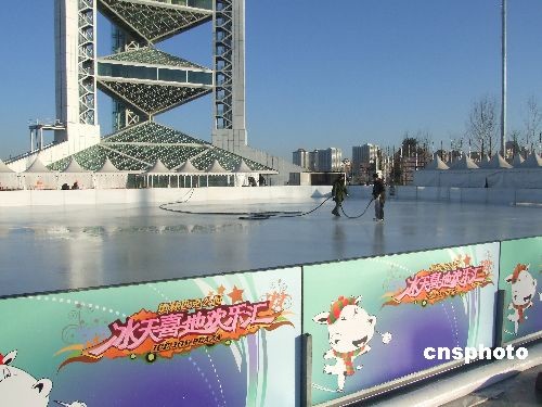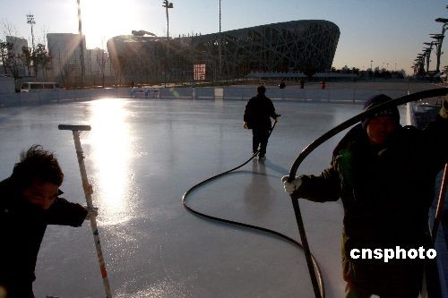 12月31日,北京國家體育場“鳥巢”旁玲瓏塔下,一塊近1000平方米的空地被厚厚的冰層覆蓋。據(jù)現(xiàn)場施工人員介紹,該場地正在建造溜冰場,預(yù)計(jì)冰面能達(dá)到5-6厘米厚,面積約1000平方米,為迎接元旦、春節(jié)“雙節(jié)”來臨而準(zhǔn)備的臨時冰場,預(yù)計(jì)元旦即可正式對游客開放。