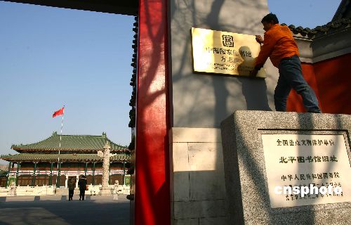 1月4日,中國(guó)國(guó)家圖書館方志館正式掛牌。國(guó)圖方志館位于文津街7號(hào),與原有的國(guó)圖古籍館同址。在方志館臨瓊樓一層,還將新開設(shè)地方文獻(xiàn)第一閱覽室和地方文獻(xiàn)第二閱覽室,專門為讀者提供地方文獻(xiàn)資料服務(wù)。中新社發(fā) 富田 攝