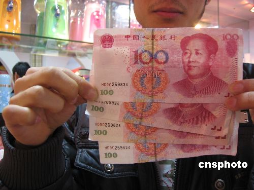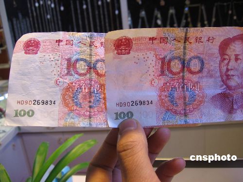1月9日,廣西南寧市步行街某商場內(nèi),一店主展示收到的“HD”編碼開頭的百元假鈔。該商場物業(yè)部門稱,12月28號(hào)商場開業(yè)當(dāng)天,多個(gè)商戶收到此類假鈔共10余張。中新社發(fā) 王剛 攝