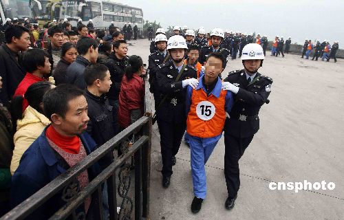 1月16日,重慶市公安局將30名扒手分別押至該市渝中區(qū)朝天門、菜園壩長途汽車站、渝北區(qū)龍頭寺汽車站等主城區(qū)4個(gè)人口密集地區(qū),請(qǐng)市民辨認(rèn)和舉報(bào)。該市公安局方面稱,這些扒手幾乎都是慣扒,且全部是最近在他們作案時(shí)抓到的。之所以押到車站鬧市,是希望曾經(jīng)失竊的市民現(xiàn)場辨認(rèn)和舉報(bào),同時(shí)也是警方對(duì)扒手作案現(xiàn)場的恢復(fù)、重建等系列案偵工作手段。中新社發(fā) 吳子敬 攝