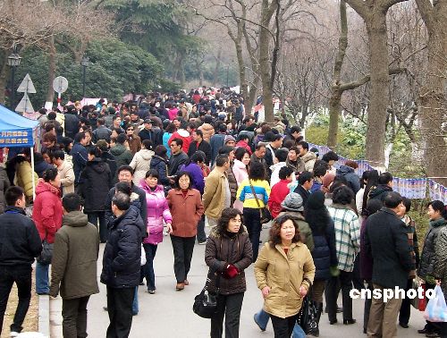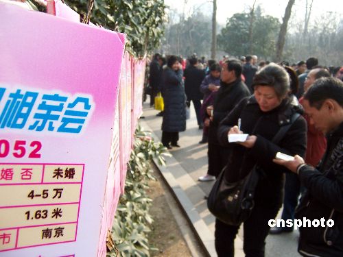 2009年1月17日,江蘇省南京市2009年首場(chǎng)萬人相親會(huì)在該市莫愁湖公園舉行。此次相親會(huì)打出了溫情標(biāo)語(yǔ)“我想有個(gè)家”,吸引了當(dāng)?shù)乇姸嗾骰檎呒捌溆H友參加。中新社發(fā) 王啟明 攝