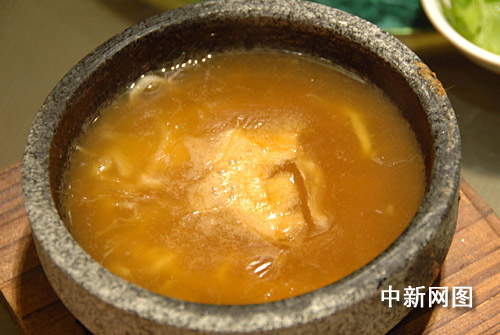 這道用魚翅、高湯焗制出來的菜肴,這道菜用料高檔,味香汁濃,營(yíng)養(yǎng)豐富,極具食相,吃后齒頰留香,是該菜館的招牌菜式之一。
