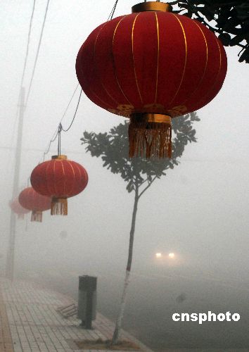 圖:強(qiáng)濃霧天氣籠罩山東棗莊地區(qū)