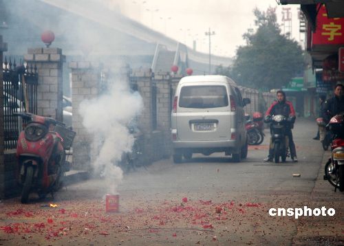 2月2日,正月初八,杭州的許多公司單位第一天上班,按慣例燃放“開門炮”期待開門紅。當(dāng)日上午八點(diǎn)左右,杭州城內(nèi)爆竹聲此起彼伏。中新社發(fā) 金斌 攝