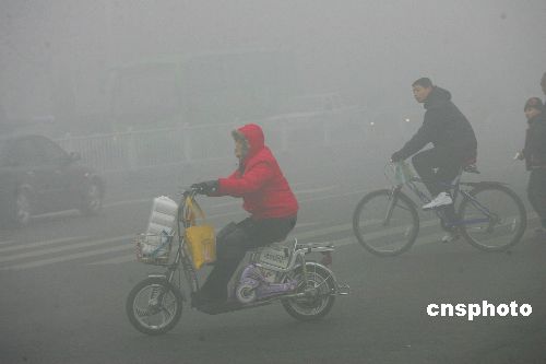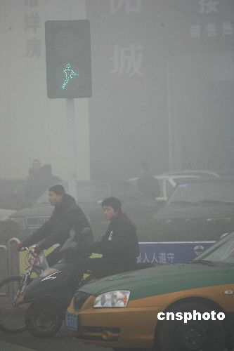 2月2日,山東濰坊整個城市全部為大霧所籠罩。連日來,濰坊市區(qū)受到大霧天氣襲擾,能見度最低時不足50米,當?shù)貧庀蟛块T發(fā)布大霧黃色預警信號,提醒市民安全出行。中新社發(fā) 張馳 攝