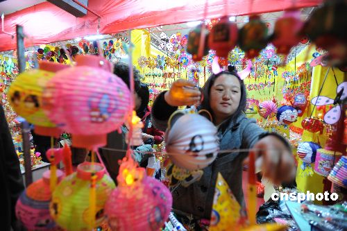 二月三日晚,福州市民在街市上選購令人眼花瞭亂的各式傳統(tǒng)元宵花燈。隨著元宵節(jié)日益臨近,歷史文化名城福州市的社會(huì)生活更加豐富多彩。 中新社發(fā) 鄭祚聲 攝