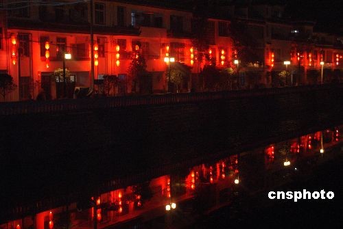 元宵節(jié)臨近,2月5日,陜西寧強街頭點亮元宵燈飾。中新社發(fā) 黎徳華 攝