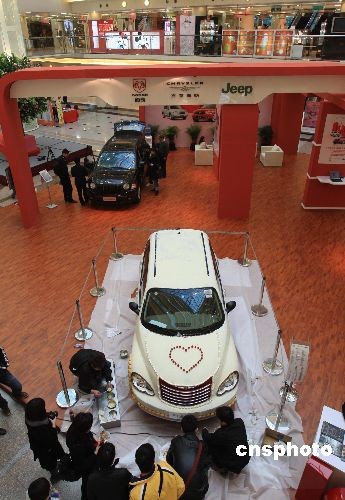 2月8日,上海兩位巧克力工藝師用兩天的時(shí)間、超過(guò)200公斤白巧克力原料,精心打造一款時(shí)尚酷車(chē),浪漫約會(huì)即將到來(lái)的“情人節(jié)”。中新社發(fā) 潘索菲 攝