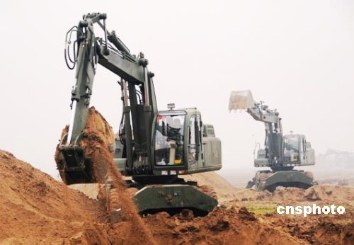 2月8日,剛剛赴蘇丹維和歸來的駐沁某部官兵正在河南省新鄉(xiāng)市封丘縣柳園口黃河灘區(qū)開挖引黃灌溉渠。據(jù)了解,駐沁某部接濟(jì)南軍區(qū)命令,于2月7日緊急馳援新鄉(xiāng)市封丘縣柳園口執(zhí)行抗旱救災(zāi)。據(jù)悉,該部將用5天時(shí)間在柳園口黃河灘開挖一條長2700米、寬18米、深3.5米,總工程量11.6萬立方米的引黃灌溉渠,渠道開通后將解決400萬畝麥田的灌溉問題。 中新社發(fā) 杜文旭 攝
