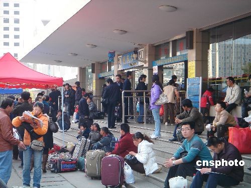隨著春節(jié)臨近尾聲,許多農(nóng)民工已經(jīng)出門前往上海、廣州等地務工,今年上海方向的務工潮涌現(xiàn),前往上海、寧波方向的火車票也比較緊張。目前,桂林站上下車人數(shù)都到達了14000人左右的高峰。中新社發(fā) 熊葦 攝