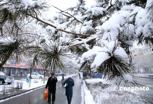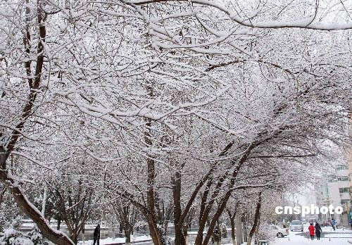 2月13日,新疆哈密地區(qū)出現(xiàn)降雪降溫天氣,哈密市街頭的樹(shù)木上掛滿(mǎn)了白雪,形成了美麗的雪凇景象。據(jù)了解,地處盆地的哈密市在春天出現(xiàn)雪凇現(xiàn)象十分少見(jiàn)。中新社發(fā) 蔡增樂(lè) 攝