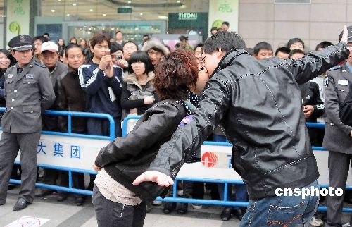 2月14日,杭州市首屆情人節(jié)“牛吻”大賽在武林銀泰、西湖銀泰、杭州百貨大樓三地同時(shí)舉行,活動(dòng)吸引了80對(duì)情侶前來參加。 中新社發(fā) 引煒