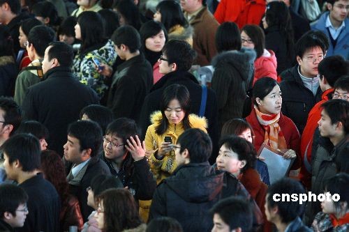 2月15日,北京國展舉行大型招聘會,約1.3萬個崗位虛位以待。眾多求職者齊聚會場查閱招聘資料,選擇適合自己的工作崗位。據(jù)了解,此次招聘會共有770家招聘企業(yè)參展,以中小企業(yè)居多,在提供的1萬多個崗位中,銷售崗位占四成。中新社發(fā) 鄭雄增 攝