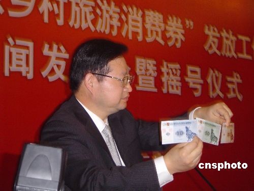 2月16日,南京市向城區(qū)居民發(fā)放2000萬元鄉(xiāng)村旅游消費券以帶動鄉(xiāng)村游,在市民代表和公證部門監(jiān)督下進行公開搖號,搖中的20萬戶居民每戶獲得100元旅游消費券,可在指定的該市37個鄉(xiāng)村旅游點抵扣相應消費費用。圖為搖號儀式上市旅游局官員展示旅游消費券樣式。中新社發(fā) 王國安 攝