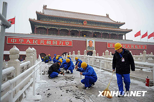 天安門外金水橋保護(hù)修繕工程于2月18日正式開工。本次工程主要是對天安門南側(cè)的外金水橋進(jìn)行修繕,涉及橋面的修補(bǔ)面積約為327.69 ㎡,主要修繕內(nèi)容是對金水橋中心主橋(御路橋)的橋面加鋪保護(hù)性棧道,避免今后參觀游人對橋面造成損傷。本次修繕過程中并不會(huì)完全封閉施工,具體情況會(huì)根據(jù)施工需要采取臨時(shí)性措施,以方便游人。工程預(yù)計(jì)2009年5月1日竣工。財(cái)政撥款投資預(yù)算為94.64萬元。