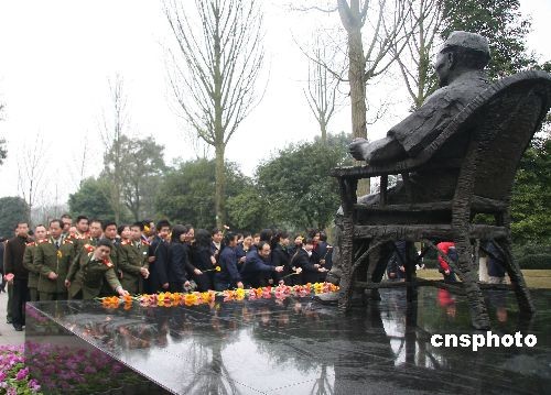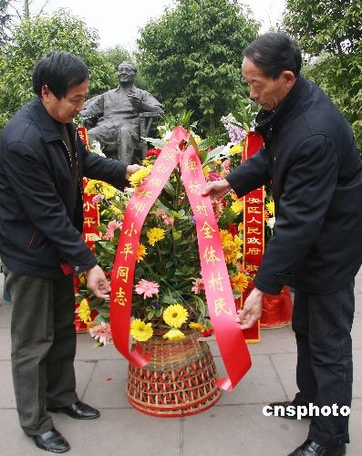 2月19日,廣安區(qū)協(xié)興鎮(zhèn)牌坊村村民在為小平銅像獻花以示懷念。當日,是世紀偉人鄧小平逝世12周年紀念日,四川省廣安市和來自全國各地的各界人士紛紛自發(fā)前來為鄧小平銅像獻花以示深切懷念。中新社發(fā) 杜修戰(zhàn) 攝