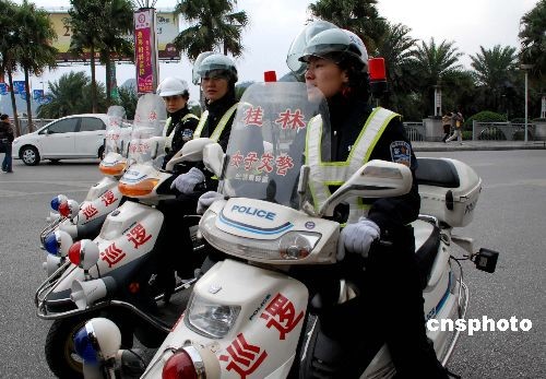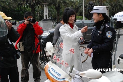 2月20日,廣西桂林警方開展民眾拍攝交通警察執(zhí)勤活動,讓民眾零距離接觸交警的執(zhí)法工作。中新社發(fā) 周利朔 攝