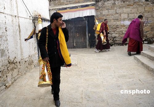 2月24日,藏歷年三十,拉薩哲蚌寺內(nèi)穿著時髦的拉薩哲蚌寺喇嘛群培格桑剛剛跟老師學(xué)習(xí)完吹法號的技法,在藏歷新年的佛事活動中,他將上陣吹響法號。為僧已經(jīng)十多年的群培格桑喜歡偶爾穿著美觀的便裝。中新社發(fā) 廖攀 攝