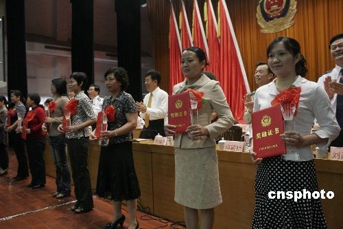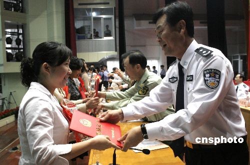 2月26日,廣西公安廳在南寧為十余名優(yōu)秀警嫂頒獎(jiǎng),以表彰其克服各種困難和壓力支持丈夫做好公安保衛(wèi)工作。2月25日至26日,廣西全區(qū)公安工作會(huì)議在南寧召開(kāi)。中新社發(fā) 王剛 攝