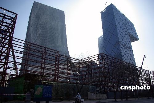 2月27日,工人們正在給央視新址火災現(xiàn)場搭建護欄。據(jù)專家勘察,央視新址北配樓主體結構未受嚴重影響,專家建議采取剝除“外衣”局部修復的方式維修該樓,估計年內能修復完成。 中新社發(fā) 九州 攝