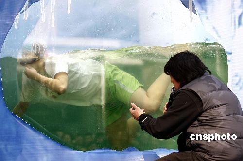 2月28日,“紅牛勇闖南北極”大型探險(xiǎn)勇士招募活動(dòng)開(kāi)始在新春的北京舉行,應(yīng)募市民在活動(dòng)中挑戰(zhàn)在冰水中憋氣。在北京站招募比賽中順利闖過(guò)三關(guān)、表現(xiàn)優(yōu)異者,將有機(jī)會(huì)前往北極極點(diǎn)探險(xiǎn)!凹t牛勇闖南北極”大型探險(xiǎn)勇士招募活動(dòng)將在全中國(guó)海選出14位挑戰(zhàn)者,送往中國(guó)內(nèi)蒙古沙漠、瑞士阿爾卑斯冰川、挪威薩米人居住區(qū)等極地訓(xùn)練營(yíng)展開(kāi)集訓(xùn),最終會(huì)有3人獲得挑戰(zhàn)北極點(diǎn)的最后通行證。而南極探險(xiǎn)選拔活動(dòng)將在下半年進(jìn)行。中新社發(fā) 盛佳鵬 攝