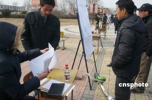 3月2日,北京市房山區(qū)舉行2009農(nóng)村鄉(xiāng)鎮(zhèn)企業(yè)人才招聘會(huì),是次招聘會(huì)以京郊鄉(xiāng)鎮(zhèn)企業(yè)為主面向農(nóng)村招聘相應(yīng)人才,參加招聘項(xiàng)目有農(nóng)業(yè)生態(tài)科技管理、技師技工、商場(chǎng)銷售、家政服務(wù)、現(xiàn)代園林管理、工貿(mào)公司以及個(gè)體經(jīng)營(yíng)企業(yè),對(duì)個(gè)人求職者現(xiàn)場(chǎng)面試,同時(shí)招聘會(huì)還設(shè)立了勞務(wù)招工咨詢處為應(yīng)聘者解答招聘事項(xiàng)。中新社發(fā) 錢興強(qiáng) 攝