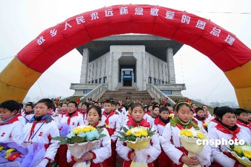 3月5日,當(dāng)日是周恩來誕辰111周年紀(jì)念日,周恩來故鄉(xiāng)——江蘇省淮安市楚州區(qū)數(shù)千社會(huì)各界人士齊聚周恩來紀(jì)念館廣場(chǎng),冒著綿綿細(xì)雨,緬懷敬愛的周總理。中新社發(fā) 李正林 攝