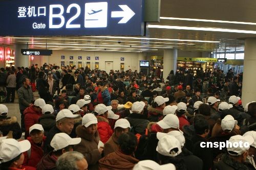 3月9日晨,成都雙流國(guó)際機(jī)場(chǎng)遭遇春季首場(chǎng)大霧天氣襲擊,為此雙流機(jī)場(chǎng)發(fā)布了三級(jí)預(yù)警信號(hào),機(jī)場(chǎng)被迫關(guān)閉5個(gè)多小時(shí),直接造成100余個(gè)進(jìn)出港航班延誤,致使近萬名出港旅客受阻于機(jī)場(chǎng),不能按時(shí)飛往目的地。中新社發(fā) 呂俊明 攝