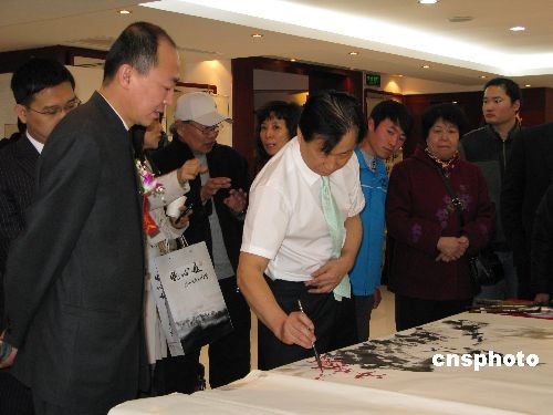 三月十日,北京的眾多書畫名人參加了第六屆中國名家書畫慈善拍賣會(huì)啟動(dòng)儀式。拍賣會(huì)將于三月十五日在北京舉行,拍賣所得利潤將全部用于中國西部生態(tài)建設(shè)和綠色扶貧事業(yè)。圖為著名國畫家、吳東魁藝術(shù)館名譽(yù)館長、世界華人書畫院院長吳東魁現(xiàn)場為義賣活動(dòng)創(chuàng)作書畫作品。中新社發(fā) 王彤 攝