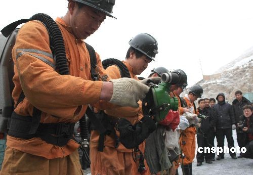 3月12日,位于甘肅省武威市天?h境內(nèi)的一座煤礦發(fā)生事故,被困井下的6名當(dāng)班工作人員全部遇難。該煤礦屬于天祝隆德煤業(yè)有限責(zé)任公司所有,證照齊全,1996年建成投產(chǎn),年設(shè)計(jì)生產(chǎn)能力6萬(wàn)噸。今年2月13日,該礦提出申請(qǐng)井下維修報(bào)告,16日獲批準(zhǔn)進(jìn)行維修,至事故發(fā)生時(shí)仍在維修整改之中,并未投入生產(chǎn)。圖為救援人員作下井前的準(zhǔn)備工作。中新社發(fā) 殷春永 攝