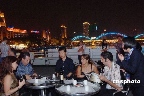 正在廣州舉行的廣州家具博覽會組委會,3月18日晚在“ 珠江夜游”的游艇上舉行了“全球買家之夜”聯(lián)誼活動,近年,“珠江夜游”已成為廣州旅游熱線,不少商家和機構都將聯(lián)誼及商務活動安排在游艇上舉辦,令客人在欣賞珠江兩岸夜景之時亦可增進相互之間的友誼。中新社發(fā) 梁永強 攝