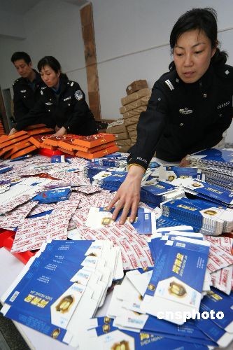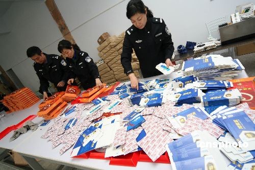 3月18日,河南許昌市魏都公安分局民警在涉嫌制造假藥窩點(diǎn)統(tǒng)計(jì)查獲的假藥及藥品標(biāo)簽、藥盒等。當(dāng)日,魏都警方接群眾舉報,在一閑置廠房內(nèi)查獲涉嫌制造假藥窩點(diǎn),當(dāng)場查扣涉嫌假冒藥品10多種,半成品藥品、包裝箱、合格證、防偽標(biāo)識等1000多件,涉案值達(dá)2000余萬元。假冒藥品有五豆平糖膠囊、腎金子、腎黃金、協(xié)和降脂等10多種,藥效包含降壓、減肥、壯陽滋補(bǔ)等。藥品的制假技術(shù)很高,須借助儀器檢測才能區(qū)別。此案正在進(jìn)一步調(diào)查處理中。中新社發(fā) 牛書培 攝