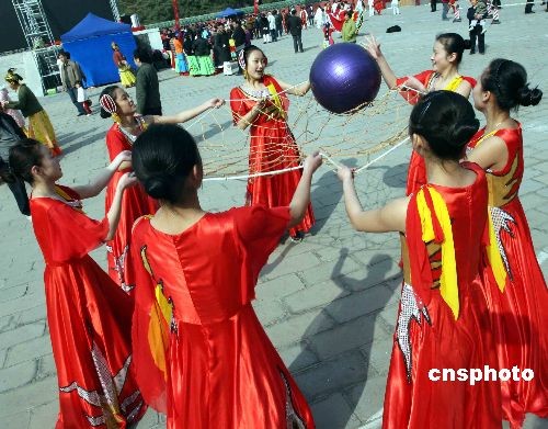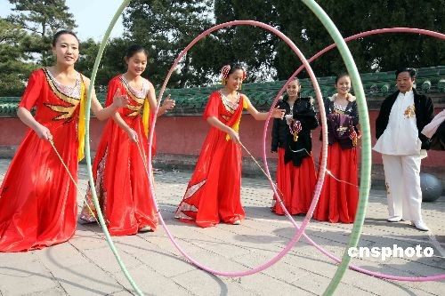三月二十日,是中國(guó)二十四節(jié)氣中的春分。北京春分朝陽(yáng)民俗文化藝術(shù)節(jié)閃亮登場(chǎng),為中國(guó)這一第一批非物質(zhì)文化遺產(chǎn)的傳承提供了展示的天地。北京春分朝陽(yáng)民俗文化藝術(shù)節(jié)于二零零七年開(kāi)始首創(chuàng),直至今年已經(jīng)舉辦了三屆。圖為少女們?cè)诒本┐悍殖?yáng)民俗文化藝術(shù)節(jié)上進(jìn)行表演。中新社發(fā) 任海霞 攝
