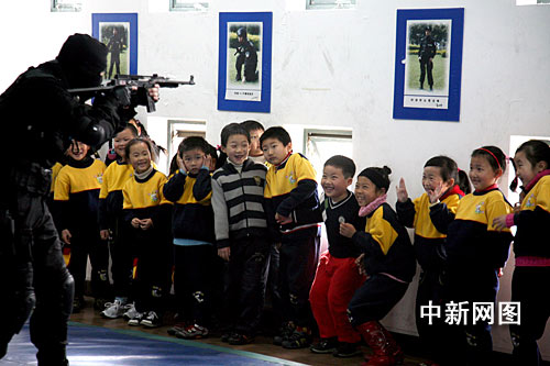 圖:外來務(wù)工人員子弟在滬感受特警雄風