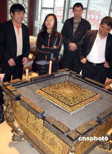 于今年三月進行拍賣的北京“奧運缶”現(xiàn)在已是各有其主。在北京閩龍?zhí)沾伤囆g(shù)館里,經(jīng)過競拍而擺放在這里的“奧運缶”成為人們爭相觀賞的內(nèi)容之一,人們不僅可以欣賞陶瓷藝術(shù)品,還可以“零距離”接觸真正的“奧運缶”。中新社發(fā) 任海霞 攝