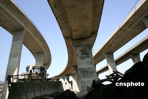 三月二十三日,福州市最大的高速公路互通立交橋——馬尾樞紐互通主體工程六十八座墩身和承臺(tái)已全面完成,將力爭(zhēng)在年底竣工。馬尾樞紐互通將興建四條高位匝道,匝道橋總長二千九百多米,位于沈海高速公路馬尾段,是福州機(jī)場(chǎng)高速公路二期工程的起點(diǎn),通過青洲大橋與機(jī)場(chǎng)高速公路一期相連接,形成國際機(jī)場(chǎng)快速通道。中新社發(fā) 楊婀娜 攝