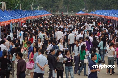 3月24日,廣西舉行促進(jìn)大學(xué)畢業(yè)生就業(yè)公共服務(wù)系列活動啟動儀式暨廣西民族大學(xué)專場招聘會。中國廣西人才市場將招聘會設(shè)在了大學(xué)校園,約5000名即將畢業(yè)的大學(xué)生參加招聘會。據(jù)悉,2009年在廣西畢業(yè)的大學(xué)生預(yù)計達(dá)13萬人,就業(yè)壓力空前。為此,廣西人事廳將采取多種措施,在廣西各大學(xué)進(jìn)行專場招聘和一系列就業(yè)公共服務(wù)活動,零距離為畢業(yè)生提供服務(wù)。中新社發(fā) 劉萬強(qiáng) 攝