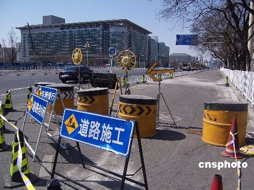 2009年3月25日,北京長安街西單文化廣場前非機(jī)動(dòng)車道,近40平方米路面發(fā)生輕微沉降。事發(fā)后,該路面被交管部門臨時(shí)封閉,F(xiàn)場勘測人員介紹,沉降路面下方為地鐵四號(hào)線與一號(hào)線的換乘通道,此處路面沉降約1.85厘米。目前,相關(guān)工程暫停施工。中新社發(fā) 九州 攝