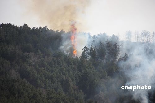 2009年3月28日下午2時(shí)左右,山西省盂縣東梁鄉(xiāng)東梁村騎龍山發(fā)生森林火災(zāi)。 森林火災(zāi)發(fā)生后,當(dāng)?shù)卣⒐、林業(yè)、醫(yī)務(wù)等部門第一時(shí)間趕到現(xiàn)場(chǎng),組織滅火,并啟動(dòng)了相關(guān)應(yīng)急預(yù)案。當(dāng)?shù)爻鰟?dòng)數(shù)百名干部群眾撲火,陽泉市武警也趕赴現(xiàn)場(chǎng)增援。由于火勢(shì)兇猛,在附近的村莊都能聽到火燒山林的聲音,山火的灰塵甚至飄到了最近的溫家山村。截至發(fā)稿時(shí),沒有人員傷亡報(bào)告。中新社發(fā) 程瑜 攝