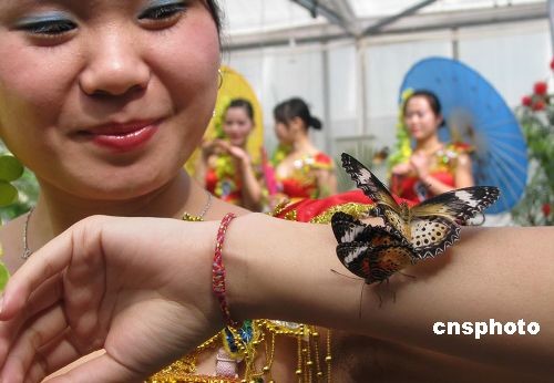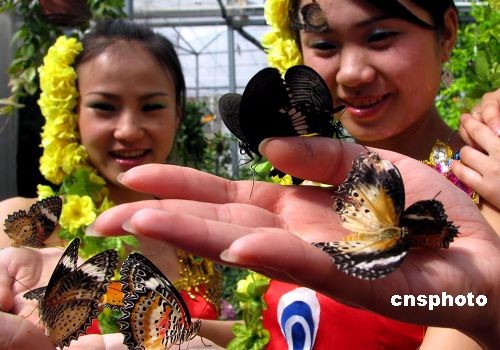 4月1日,位于北京植物園內(nèi)的熱帶蝴蝶生態(tài)園正式開(kāi)園,數(shù)千只色彩斑斕的蝴蝶和數(shù)十種千奇百怪的蟲(chóng)子將正式與游客見(jiàn)面。熱帶生態(tài)蝴蝶園是中國(guó)內(nèi)地首次從馬來(lái)西亞檳城蝴蝶園進(jìn)口的集昆蟲(chóng)蝴蝶標(biāo)本、活體昆蟲(chóng)展示和活蝴蝶放飛為一體的具有知識(shí)性、趣味性、科普性、教育性的昆蟲(chóng)蝴蝶科普生態(tài)園,也是國(guó)內(nèi)第一家進(jìn)口的活體蝴蝶和昆蟲(chóng)品種最全、規(guī)模最大、蝴蝶昆蟲(chóng)標(biāo)本最多科普展。熱帶蝴蝶生態(tài)園共分為三個(gè)展區(qū):蝴蝶館、昆蟲(chóng)館、科普標(biāo)本館。圖為蝴蝶生態(tài)園吸引游客。中新社發(fā) 錢興強(qiáng) 攝