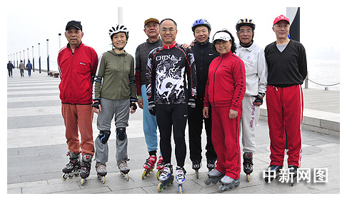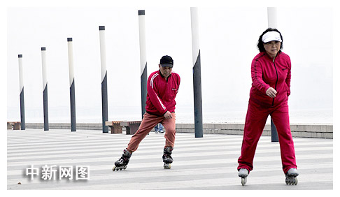 中新網(wǎng)蘇州4月16日電(周昕) 清晨的蘇州工業(yè)園區(qū)金雞湖畔,一群老人特別的顯眼,和一般老人打拳、舞扇、散步的鍛煉方式不同,他們雙手背在身后,腳下踩著“風火輪”,八個人排成一列,向前滑行,一個滑步便輕松地把其他人遠遠地甩在了身后,顯得異常瀟灑并且充滿活力。