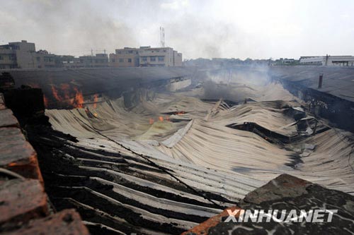 4月21日12時(shí)許,位于成都市金牛區(qū)天回鎮(zhèn)大灣村的成都港泰實(shí)業(yè)有限公司近千平方米的紅泰家具生產(chǎn)車間發(fā)生火災(zāi),成都市公安消防支隊(duì)接到報(bào)警后立即調(diào)派5個(gè)消防中隊(duì)的13臺(tái)消防車趕赴現(xiàn)場(chǎng)撲救,在下午5時(shí)左右將大火撲滅;馂(zāi)沒有造成人員傷亡。(李海軍)