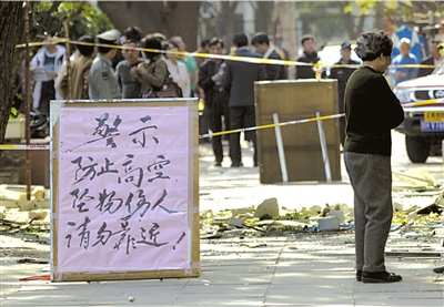 “像是地震,太可怕了!”住在3層的大媽臉色慘白,向眾人講述事發(fā)一幕。她說,當時正在看電視,突然聽到“嘭”的一聲巨響,感覺大地一抖,聽到玻璃破碎和石頭砸落的聲音。