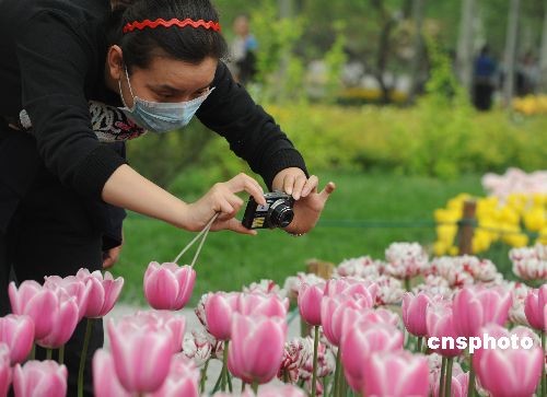 4月29日,一位北京姑娘戴著口罩在公園里游玩拍照。中國(guó)“五一”小長(zhǎng)假將臨,將有億萬(wàn)民眾旅游度假,官方提醒密切關(guān)注國(guó)外豬流感疫情,主動(dòng)預(yù)防,盡量避開(kāi)人群密集場(chǎng)所。世界衛(wèi)生組織當(dāng)日晚在日內(nèi)瓦宣布,將全球流感大流行警告級(jí)別從目前的4級(jí)提高到5級(jí)。中新社發(fā) 賈國(guó)榮 攝