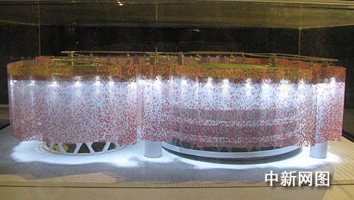據(jù)介紹,瑞士國家館的總面積為四千平方米,主體結(jié)構(gòu)由兩個承重的圓柱和綠草如茵的屋頂組成,并由循環(huán)的觀光纜車系統(tǒng)相連接。