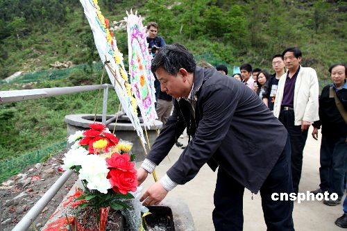 5月9日下午,中國(guó)美協(xié)黨組書(shū)記、常務(wù)副主席吳長(zhǎng)江等美協(xié)領(lǐng)導(dǎo)帶隊(duì)來(lái)到北川縣地震遺址悼念在去年大地震中逝去的同胞。由中國(guó)美術(shù)家協(xié)會(huì)、四川省委宣傳部等主辦的“感恩·重建——“5·12”汶川大地震一周年全國(guó)美術(shù)作品展”當(dāng)日在四川美術(shù)館開(kāi)幕。中新社發(fā) 王保勝 攝
