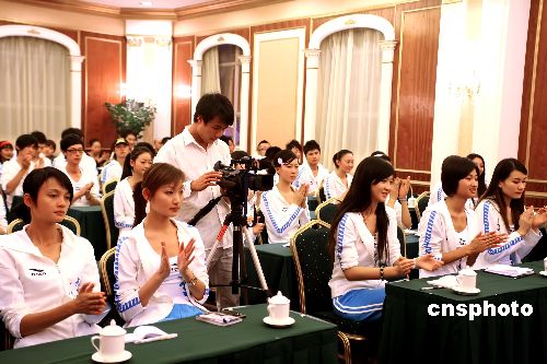 2007年11月14日,進(jìn)入第十三屆中國(guó)模特之星大賽全國(guó)決賽的30名男模和30名女模抵達(dá)南寧。主辦方廣西電視臺(tái)《時(shí)尚中國(guó)》當(dāng)晚舉行選手見(jiàn)面會(huì)。廣西電視臺(tái)副臺(tái)長(zhǎng)林杰謀,大賽總導(dǎo)演彭勇,《時(shí)尚中國(guó)》制片何海林分別給選手鼓勵(lì)和提出要求。模特們11月15-22日將在南寧進(jìn)行魔鬼訓(xùn)練,11月23、24、25日進(jìn)行三場(chǎng)決賽直播。中新社發(fā) 駱文剛 攝