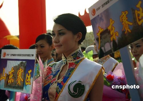 12月1日上午,2008世界旅游大使冠軍總決賽中國(guó)區(qū)決賽在河北省正定縣開(kāi)幕,來(lái)自全國(guó)30個(gè)省市和地區(qū)分賽區(qū)的60名佳麗將在這里角逐中國(guó)區(qū)大賽冠軍。在北方10攝氏度左右低溫下,選手們以旗袍出場(chǎng),果然美麗“凍”人。中新社發(fā) 翟羽佳 攝